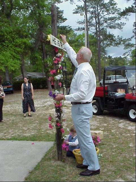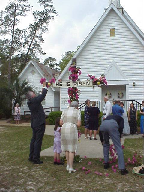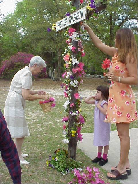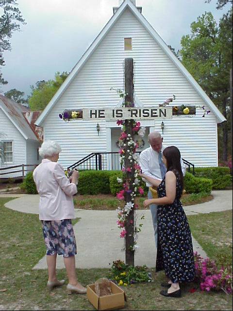 Digital Church Photos Easter Sunday March 31, 2002 Sunrise Service The Flowered Cross Easter Service An Easter Cantata by music director Greg Tulenko Family Pictures at the Flowered Cross After Service, Fellowship, Dinner... and Easter Egg Hunt