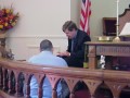 Pastor Steven Riddle gives the children's talk David Zody "practices" after the service