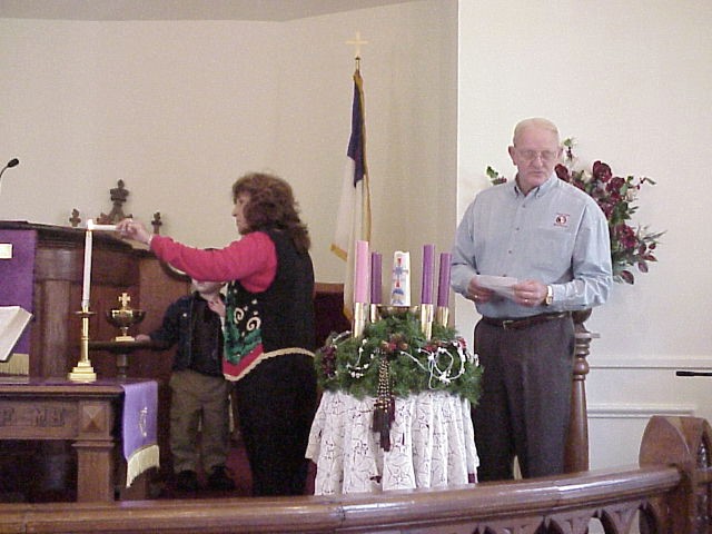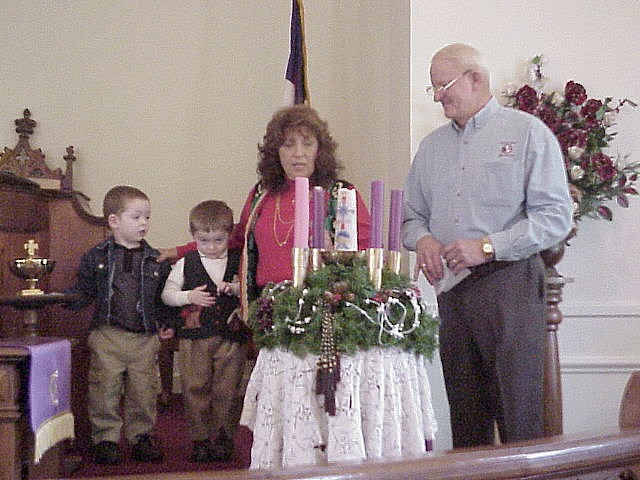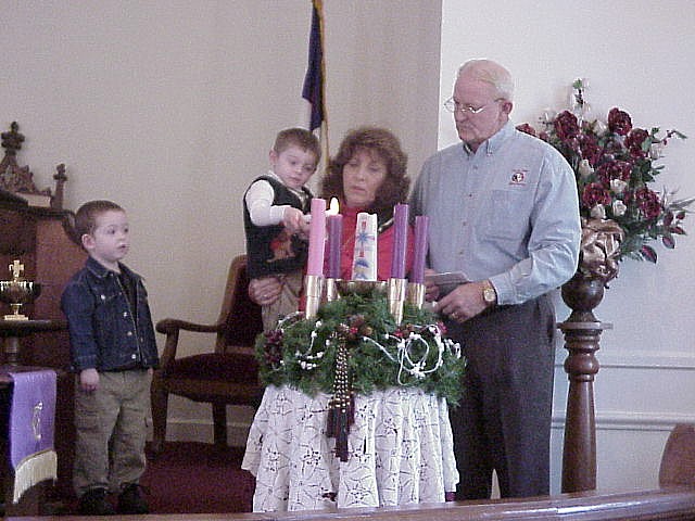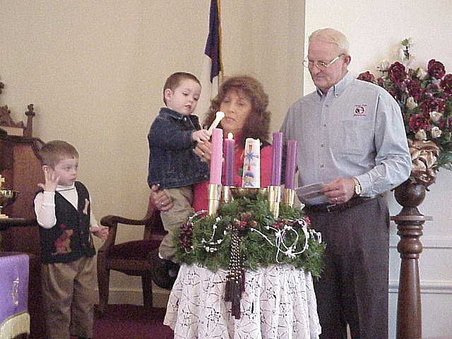 Digital Church Photos Sunday December 1, 2002 Chrismon Service at Bethel Don & Pat Singletary, grandson Carter & David Zody light the first Advent candle