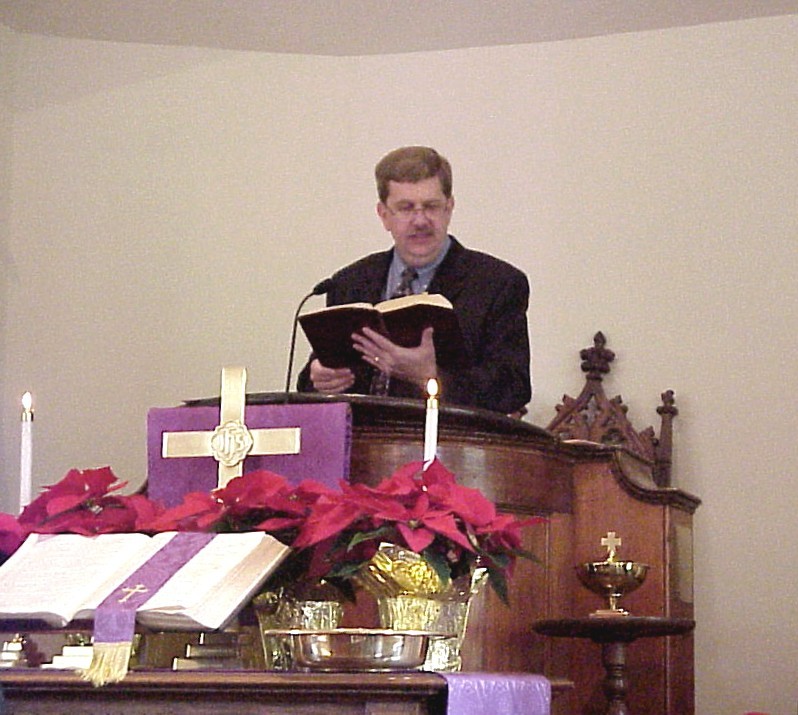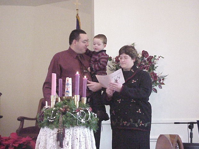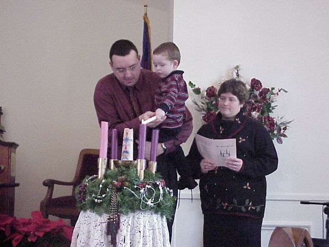 Craig, Janie & David light the first and second Advent candles