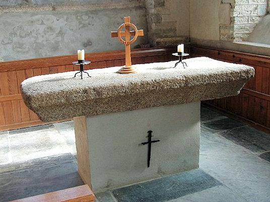 A pre-reformation church altar from Jacobstow Church, Cornwall, England. During the English Reformation and reign of Edward VI of England (r. 1547-53 CE), the altar, like many others, was removed to be replaced by a communion table.