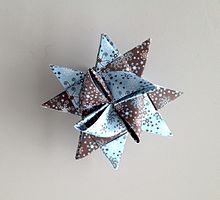 A Froebel star (German: Fröbelstern) is a Christmas decoration made of paper, common in Germany. In English it does not have a commonly recognised name; it can be referred to as Advent star, Danish star, German star, Nordic star, Pennsylvanian star, Polish star, Swedish star, Christmas star, or Froebel star. It is also sometimes called a Moravian star, though the Moravian star is a general category of geometrical shapes and the sixteen tipped piece of origami is specifically called the Froebel star. A Froebel star