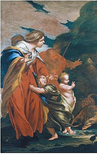 ChristianThe story was much elaborated in the "Infancy Gospels" of the New Testament apocrypha with, for example, palm trees bowing before the infant Jesus, Jesus taming dragons, the beasts of the desert paying him homage, and an encounter with the two thieves who would later be crucified alongside Jesus. In these later tales the family was joined by Salome as Jesus' nurse. These stories of the time in Egypt have been especially important to the Coptic Church, which is based in Egypt, and throughout Egypt there are a number of churches and shrines marking places where the family stayed. The most important of these is the church of Abu Serghis, which claims to be built on the place the family had its home. One of the most extensive and, in Eastern Christianity, influential accounts of the Flight appears in the perhaps seventh-century Gospel of Pseudo-Matthew, in which Mary, tired by the heat of the sun, rested beneath a palm tree. The infant Jesus then miraculously has the palm tree bend down to provide Mary with its fruit, and release from its roots a spring to provide her with water. Muslim The Qur'an does not include the tradition of the Flight into Egypt, though sura XXIII, 50 could conceivably allude to it: “And we made the son of Maryam and his mother a sign; and we made them abide in an elevated place, full of quiet and watered with springs”. However, its account of the birth of Jesus is very similar to the account of the Flight in the Gospel of Pseudo-Matthew: Mary gives birth leaning against the trunk of a date-palm, which miraculously provides her with dates and a stream. It is therefore thought that one tradition owes something to the other. Numerous later Muslim writers on the life of Jesus did transmit stories about the Flight into Egypt. Prominent examples include Abu Is?a? al-Tha?labi, whose ?Ara?is al-madjalis fi ?i?a? al-anbiya?, an account of the lives of the prophets, reports the Flight, followed by a stay in Egypt of twelve years; and al-?abari's History of the Prophets and Kings. In art