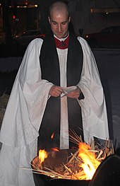 "In the primitive Church there was a godly discipline, that, at the beginning of Lent, such persons as stood convicted of notorious sin were put to open penance, and punished in this world, that their souls might be saved in the day of the Lord; and that others, admonished by their example, might be the more afraid to offend. Instead whereof, until the said discipline may be restored again, (which is much to be wished,) it is thought good that at this time (in the presence of you all) should be read the general sentences of God's cursing against impenitent sinners".In line with this, Joseph Hooper Maude wrote that the establishment of The Commination was due to a desire of the reformers "to restore the primitive practice of public penance in church". He further stated that "the sentences of the greater excommunication" within The Commination corresponded to those used in the ancient Church. The Anglican Church's Ash Wednesday liturgy, he wrote, also traditionally included the Miserere, which, along with "what follows" in the rest of the service (lesser Litany, Lord's Prayer, three prayers for pardon and final blessing), "was taken from the Sarum services for Ash Wednesday". From the Sarum Rite practice in England the service took Psalm 51 and some prayers that in the Sarum Missal accompanied the blessing and distribution of ashes. In the Sarum Rite, the Miserere psalm was one of the seven penitential psalms that were recited at the beginning of the ceremony. In the 20th century, the Episcopal Church introduced three prayers from the Sarum Rite and omitted the Commination Office from its liturgy. Low church ceremonies In some of the low church traditions, other practices are sometimes added or substituted, as other ways of symbolizing the confession and penitence of the day. For example, in one common variation, small cards are distributed to the congregation on which people are invited to write a sin they wish to confess. These small cards are brought forth to the altar table where they are burned. Regional customs In the Victorian era, theatres refrained from presenting costumed shows on Ash Wednesday, so they provided other entertainment, as mandated by the Church of England (Anglican Church). In Iceland, children "pin small bags of ashes on the back of some unsuspecting person", dress up in costumes, and sing songs for candy. Biblical significance of ashes