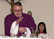 Ashes are ceremonially placed on the heads of Christians on Ash Wednesday, either by being sprinkled over their heads or, in English-speaking countries, more often by being marked on their foreheads as a visible cross. The words (based on Genesis 3:19) used traditionally to accompany this gesture are, "Memento, homo, quia pulvis es, et in pulverem reverteris." ("Remember, man, that thou art dust, and to dust thou shalt return.") This custom is credited to Pope Gregory I the Great (c. 540–604). In the 1969 revision of the Roman Rite, an alternative formula (based on Mark 1:15) was introduced and given first place "Repent, and believe in the Gospel" and the older formula was translated as "Remember that you are dust, and to dust you shall return." The old formula, based on the words spoken to Adam and Eve after their sin, reminds worshippers of their sinfulness and mortality and thus, implicitly, of their need to repent in time. The newer formula makes explicit what was only implicit in the old. Various manners of placing the ashes on worshippers' heads are in use within the Roman Rite of the Catholic Church, the two most common being to use the ashes to make a cross on the forehead and sprinkling the ashes over the crown of the head. Originally, the ashes were strewn over men's heads, but, probably because women had their heads covered in church, were placed on the foreheads of women. In the Catholic Church the manner of imposing ashes depends largely on local custom, since no fixed rule has been laid down. Although the account of Ælfric of Eynsham shows that in about the year 1000 the ashes were "strewn" on the head, the marking of the forehead is the method that now prevails in English-speaking countries and is the only one envisaged in the Occasional Offices of the Anglican Church of Papua New Guinea, a publication described as "noticeably Anglo-Catholic in character". In its ritual of "Blessing of Ashes", this states that "the ashes are blessed at the beginning of the Eucharist; and after they have been blessed they are placed on the forehead of the clergy and people." The Ash Wednesday ritual of the Church of England, Mother Church of the Anglican Communion, contains "The Imposition of Ashes" in its Ash Wednesday liturgy. On Ash Wednesday, the Pope, the Bishop of Rome, traditionally takes part in a penitential procession from the Church of Saint Anselm to the Basilica of Santa Sabina, where, in accordance with the custom in Italy and many other countries, ashes are sprinkled on his head, not smudged on his forehead, and he places ashes on the heads of others in the same way. In 2021, the Congregation for Divine Worship and the Discipline of the Sacraments issued guidance that suggested that priests should use the sprinkling method in all cases, due to the COVID-19 pandemic. The Anglican ritual, used in Papua New Guinea states that, after the blessing of the ashes, "the priest marks his own forehead and then the foreheads of the servers and congregation who come and kneel, or stand, where they normally receive the Blessed Sacrament." The corresponding Catholic ritual in the Roman Missal for celebration within Mass merely states: "Then the Priest places ashes on the head of those present who come to him, and says to each one ..." Pre-1970 editions had much more elaborate instructions about the order in which the participants were to receive the ashes, but again without any indication of the form of placing the ashes on the head. The 1969 revision of the Roman Rite inserted into the Mass the solemn ceremony of blessing ashes and placing them on heads, but also explicitly envisaged a similar solemn ceremony outside of Mass. The Book of Blessings contains a simple rite. While the solemn rite would normally be carried out within a church building, the simple rite could appropriately be used almost anywhere. While only a priest or deacon may bless the ashes, laypeople may do the placing of the ashes on a person's head. Even in the solemn rite, lay men or women may assist the priest in distributing the ashes. In addition, laypeople take blessed ashes left over after the collective ceremony and place them on the head of the sick or of others who are unable to attend the blessing. (In 2014, Anglican Liverpool Cathedral likewise offered to impose ashes within the church without a solemn ceremony.) In addition, those who attend such Catholic services, whether in a church or elsewhere, traditionally take blessed ashes home with them to place on the heads of other members of the family, and it is recommended to have envelopes available to facilitate this practice. At home the ashes are then placed with little or no ceremony. Unlike its discipline regarding sacraments, the Catholic Church does not exclude anyone from receiving sacramentals, such as the placing of ashes on the head, even those who are not Catholics and perhaps not even baptized. Even those who have been excommunicated and are therefore forbidden to celebrate sacramentals are not forbidden to receive them. After describing the blessing, the rite of Blessing and Distribution of Ashes (within Mass) states: "Then the Priest places ashes on the heads of all those present who come to him." The Catholic Church does not limit distribution of blessed ashes to within church buildings and has suggested the holding of celebrations in shopping centres, nursing homes, and factories. Such celebrations presume preparation of an appropriate area and include readings from Scripture (at least one) and prayers, and are somewhat shorter if the ashes are already blessed.