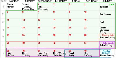 Ash Wednesday is a Christian holy day of prayer and fasting. It is preceded by Shrove Tuesday and falls on the first day of Lent, the six weeks of penitence before Easter. Ash Wednesday is traditionally observed by Western Christians. It is observed by Catholics in the Roman Rite, Anglicans, Lutherans, Methodists, Moravians, and Independent Catholics, as well as by many from the Reformed faith (inclusive of the Congregationalist, Continental Reformed, and Presbyterian traditions). As it is the first day of Lent, many Christians begin Ash Wednesday by marking a Lenten calendar, praying a Lenten daily devotional, and making a Lenten sacrifice that they will not partake of until the arrival of Eastertide. Ash Wednesday derives its name from the placing of repentance ashes on the foreheads of participants to either the words "Repent, and believe in the Gospel" or the dictum "Remember that you are dust, and to dust you shall return." The ashes are prepared by burning palm leaves from the previous year's Palm Sunday celebrations. Observances