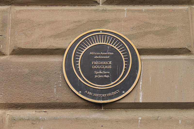 Plaque to Frederick Douglass, West Bell St., Dundee, Scotland friends in the North