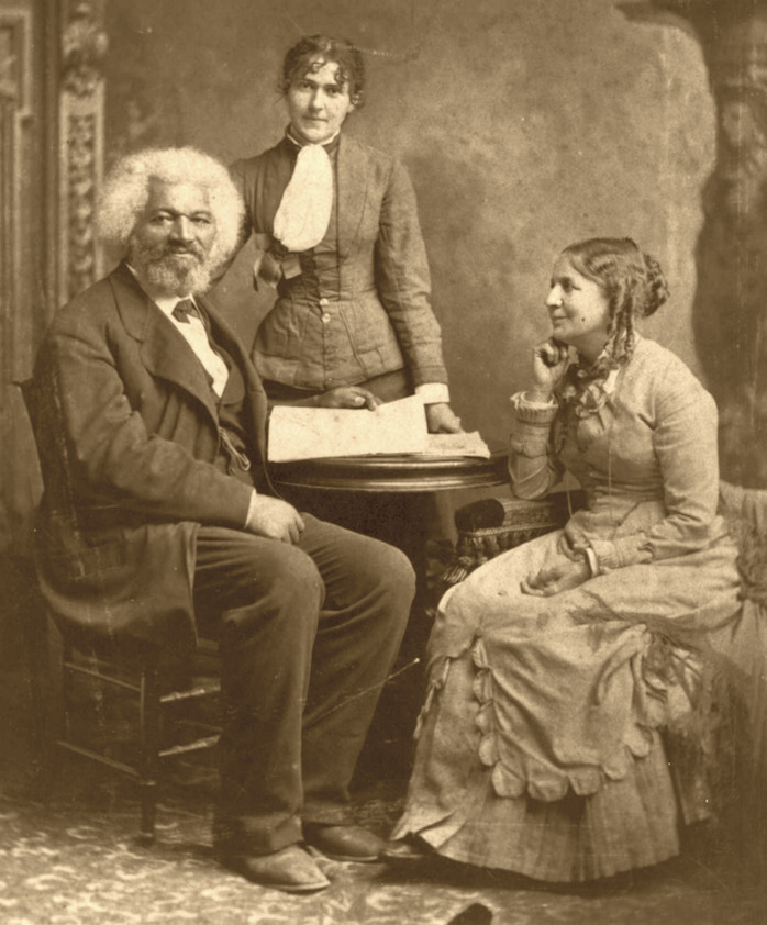 Frederick Douglass after 1884 with his second wife Helen Pitts Douglass (sitting). The woman standing is her sister Eva Pitts.
