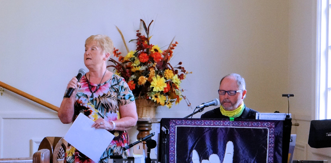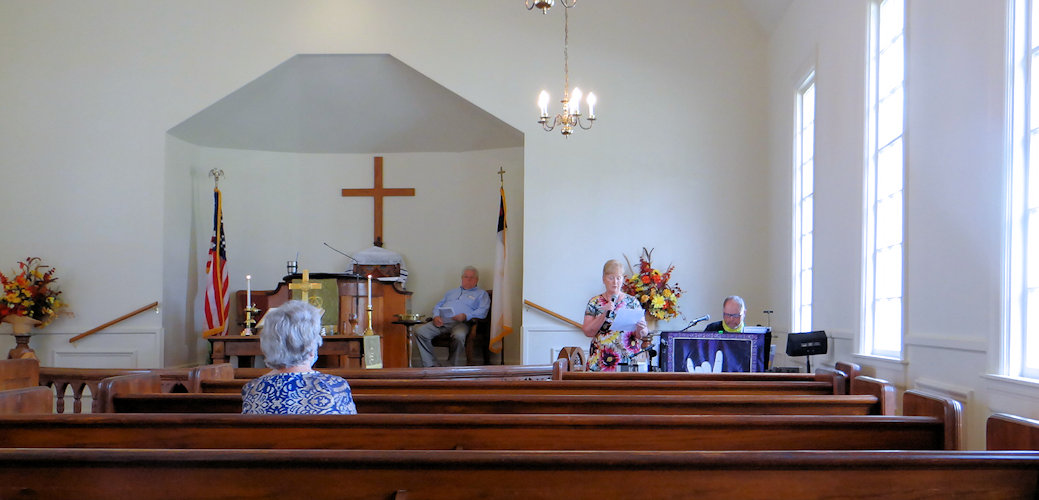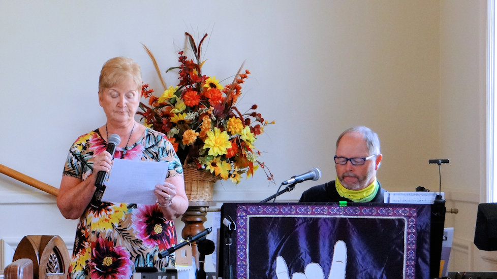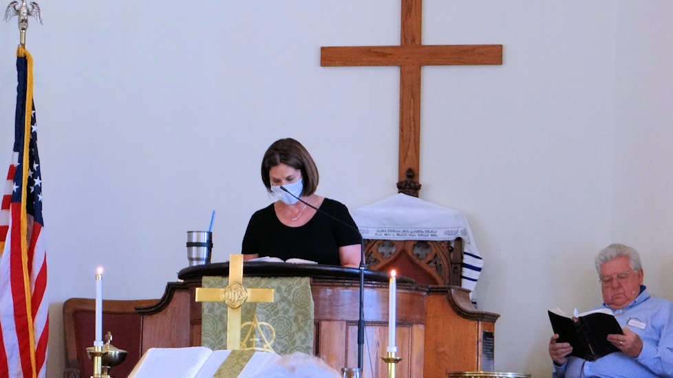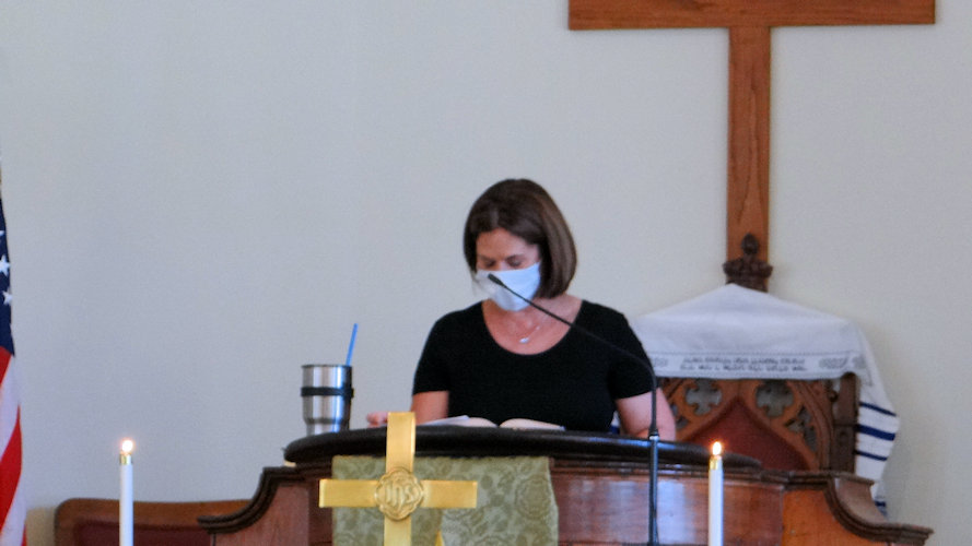 Tina Oaks reads the Old Testament scripture