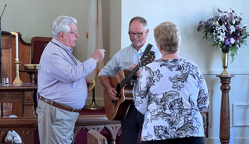 BulletinThis page has many photos and nearly all of the recorded audio from this Service. Clicking on a photo will display a larger version of the photo. Use your browser's "back arrow" to return to this page. Click on asymbol to begin playing a recording in a separate window or tab of your web browser. While the recording is playing you can return to this page by choosing its Window or Tab of your web browser. It is best to end the playing of a recording and stop its Window or Tab before starting to play another recording.