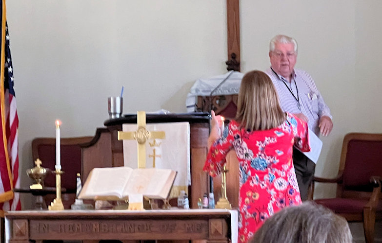 BulletinThis page has many photos and nearly all of the recorded audio from this Service. Clicking on a photo will display a larger version of the photo. Use your browser's "back arrow" to return to this page. Click on asymbol to begin playing a recording in a separate window or tab of your web browser. While the recording is playing you can return to this page by choosing its Window or Tab of your web browser. It is best to end the playing of a recording and stop its Window or Tab before starting to play another recording.