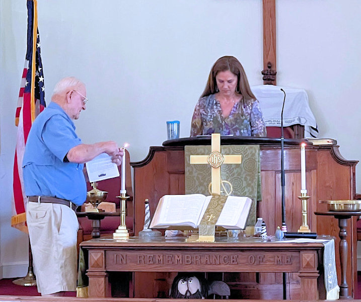 BulletinThis page has many photos and nearly all of the recorded audio from this Service. Clicking on a photo will display a larger version of the photo. Use your browser's "back arrow" to return to this page. Click on asymbol to begin playing a recording in a separate window or tab of your web browser. While the recording is playing you can return to this page by choosing its Window or Tab of your web browser. It is best to end the playing of a recording and stop its Window or Tab before starting to play another recording.