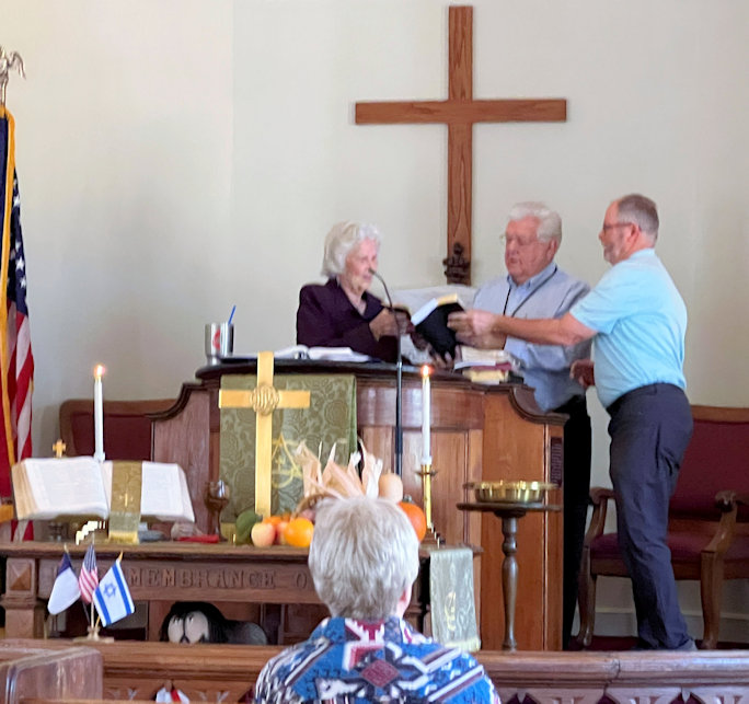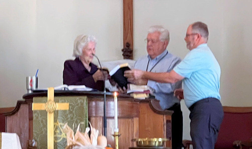 BulletinThis page has many photos and nearly all of the recorded audio from this Service. Clicking on a photo will display a larger version of the photo. Use your browser's "back arrow" to return to this page. Click on asymbol to begin playing a recording in a separate window or tab of your web browser. While the recording is playing you can return to this page by choosing its Window or Tab of your web browser. It is best to end the playing of a recording and stop its Window or Tab before starting to play another recording.