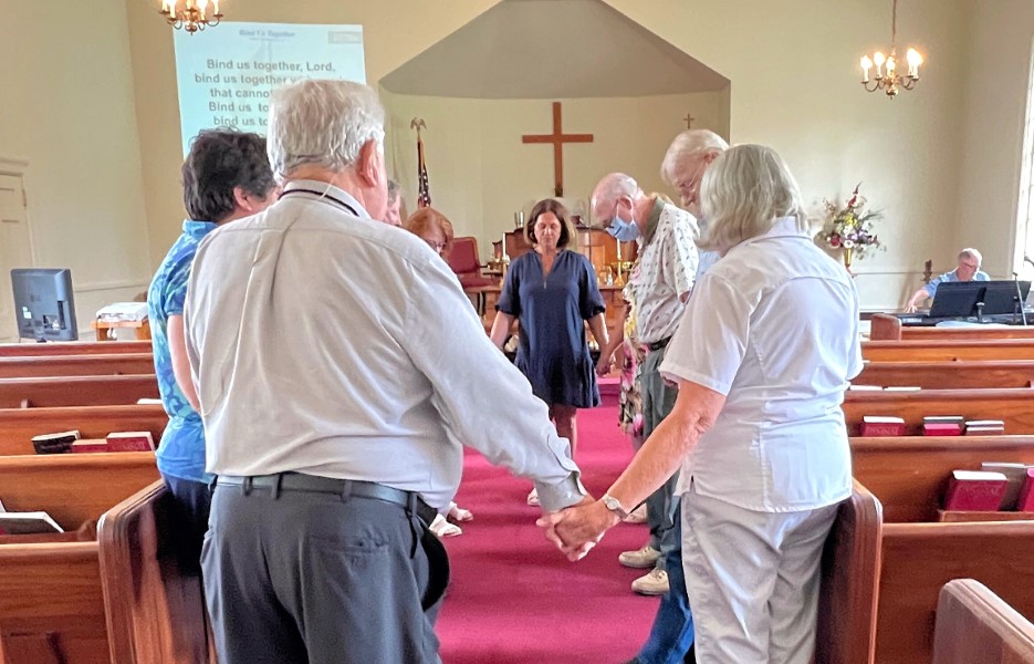 Gather in center aisle...join hands...