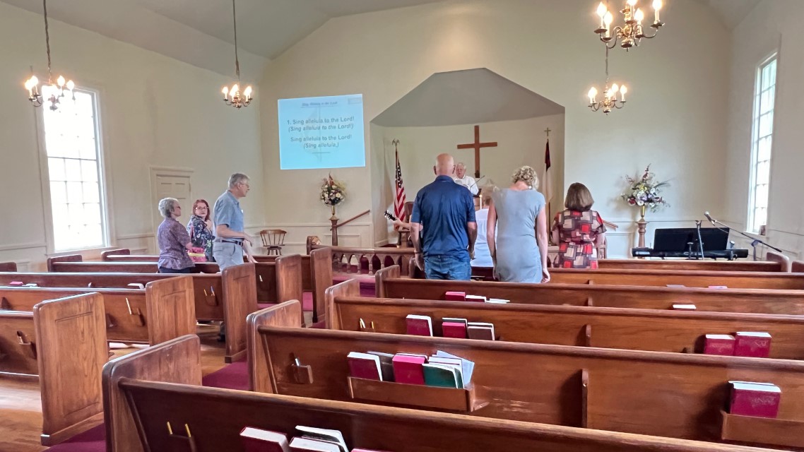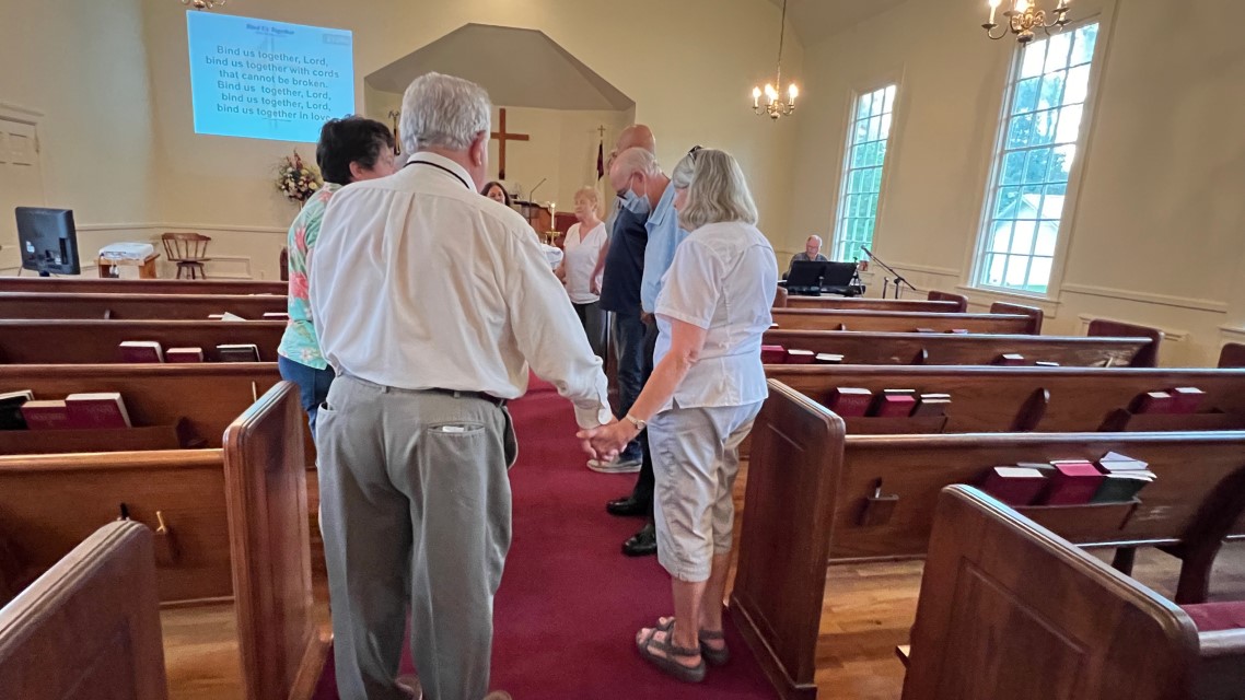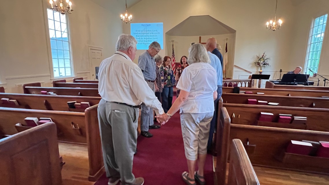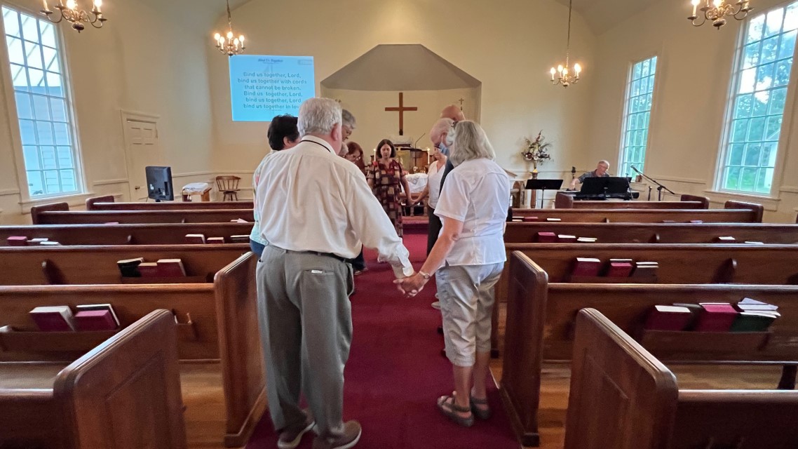 Gather in center aisle...join hands...