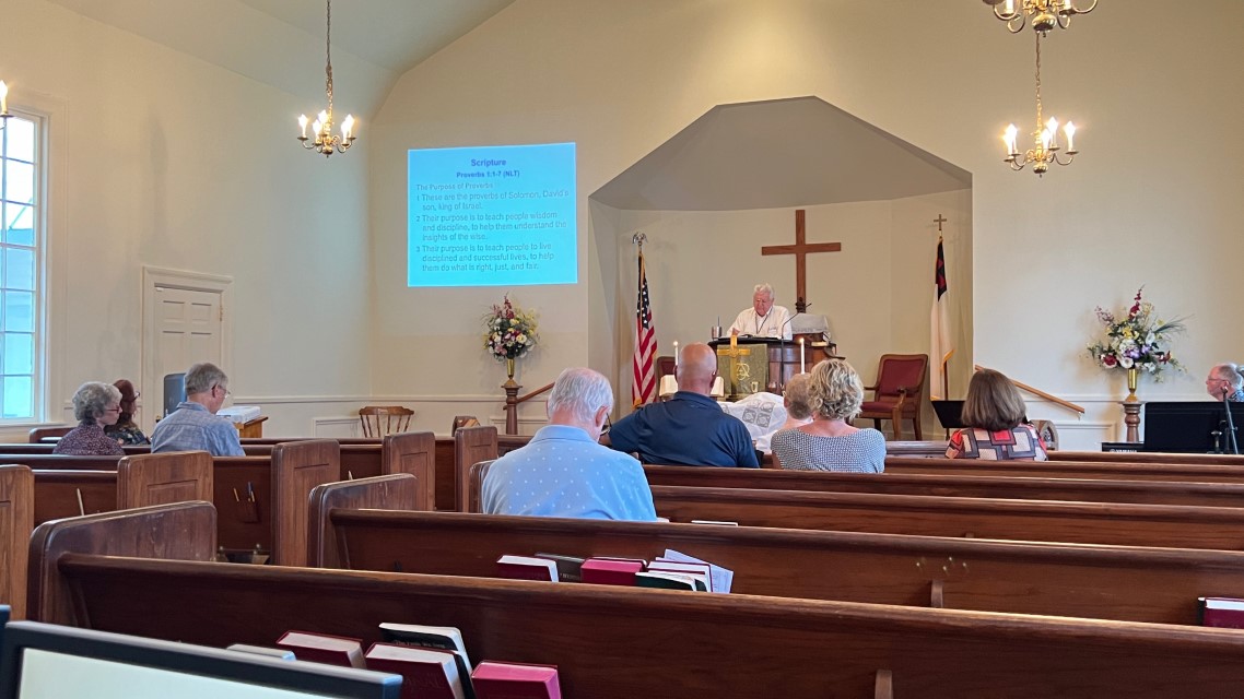The service today began and ended under cloudy skies with a period of strong showers, thunder, lightning and two brief intervals of power loss during the service. As a result, the surviving recording of the service begins near the end of the time for prayer concerns. On this page, I've used recordings for the online service in place of ones from the church service that were lost.