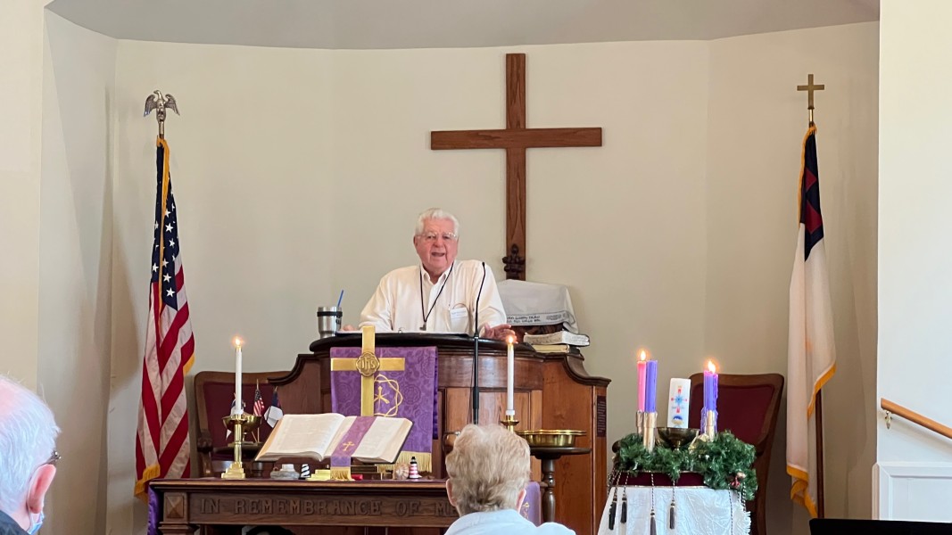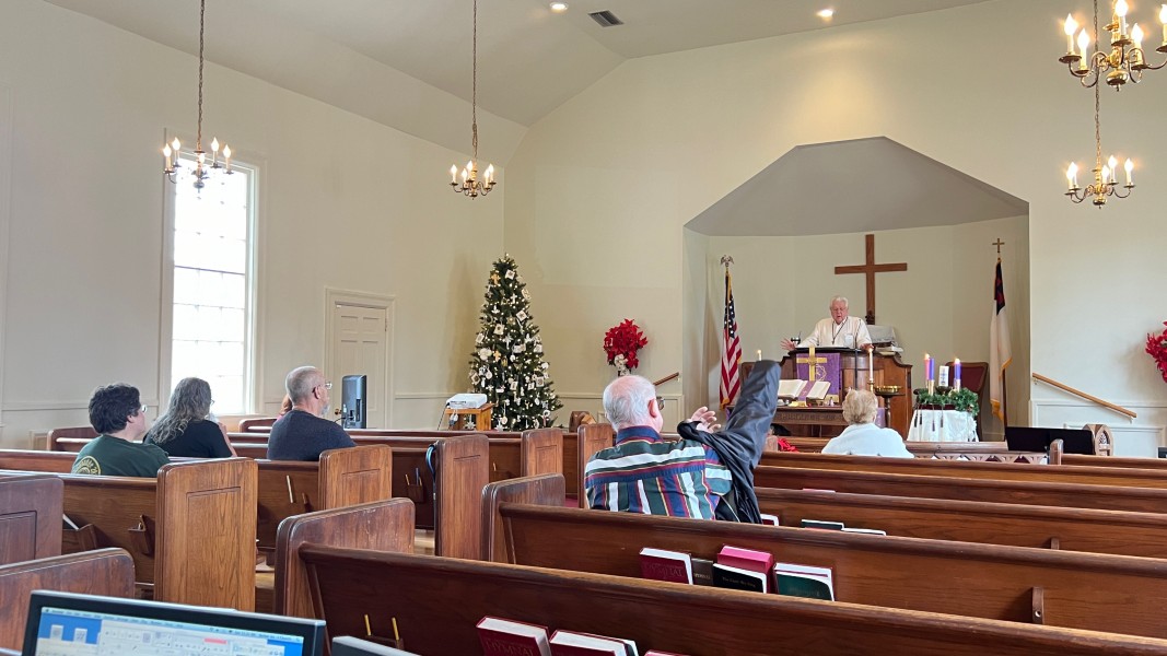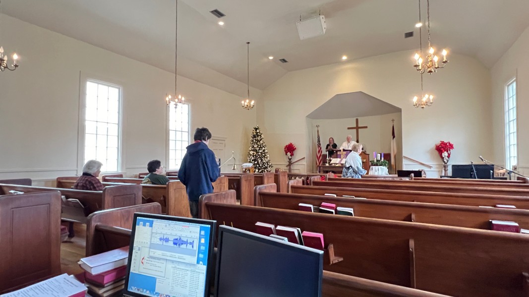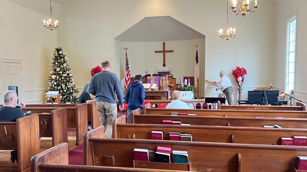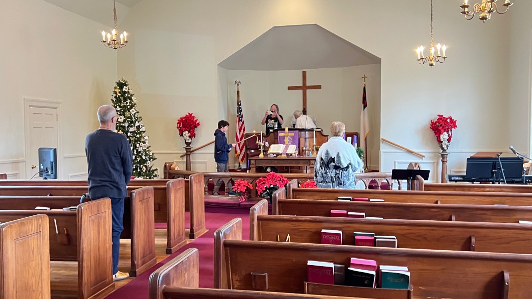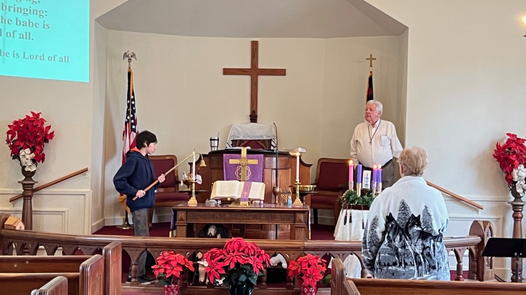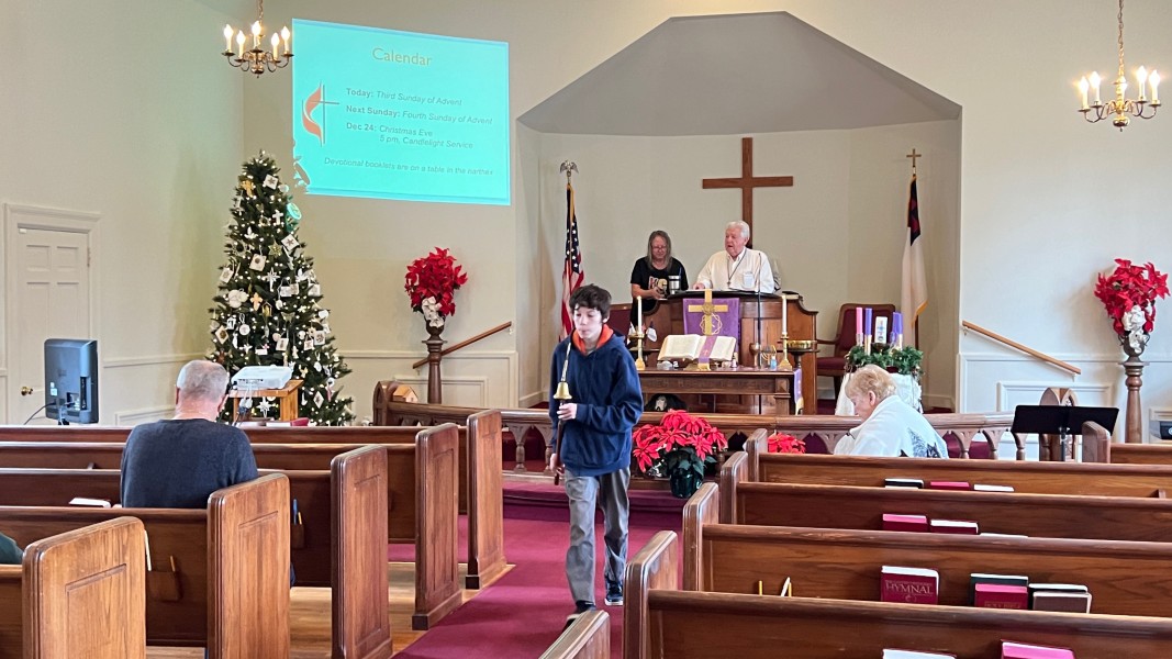 Mark rings the bell to announce the service