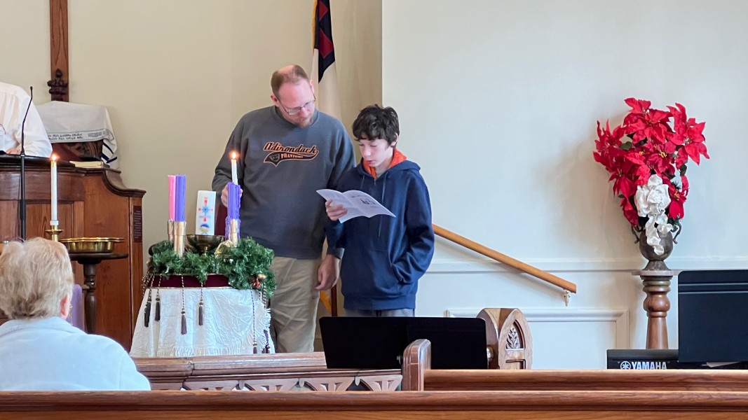 Arthur and Philip Hazard light the 3rd Sunday Candle of Peace